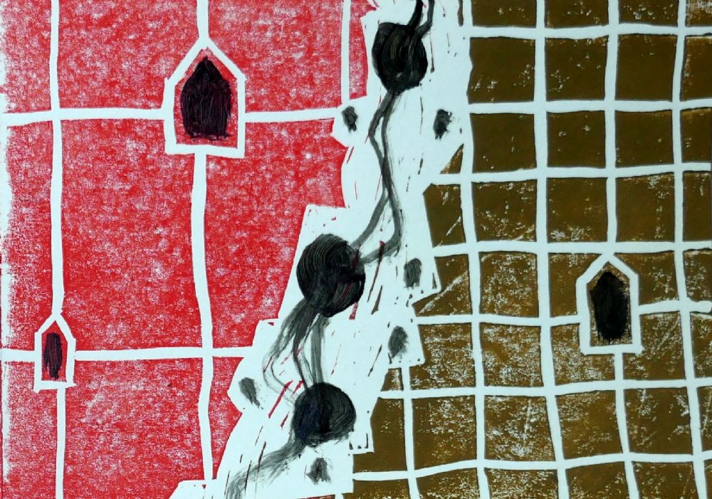 Tenslotte heb ik kort de steendruk beoefend, een vorm van vlakdruk. Soms is er een combinatie